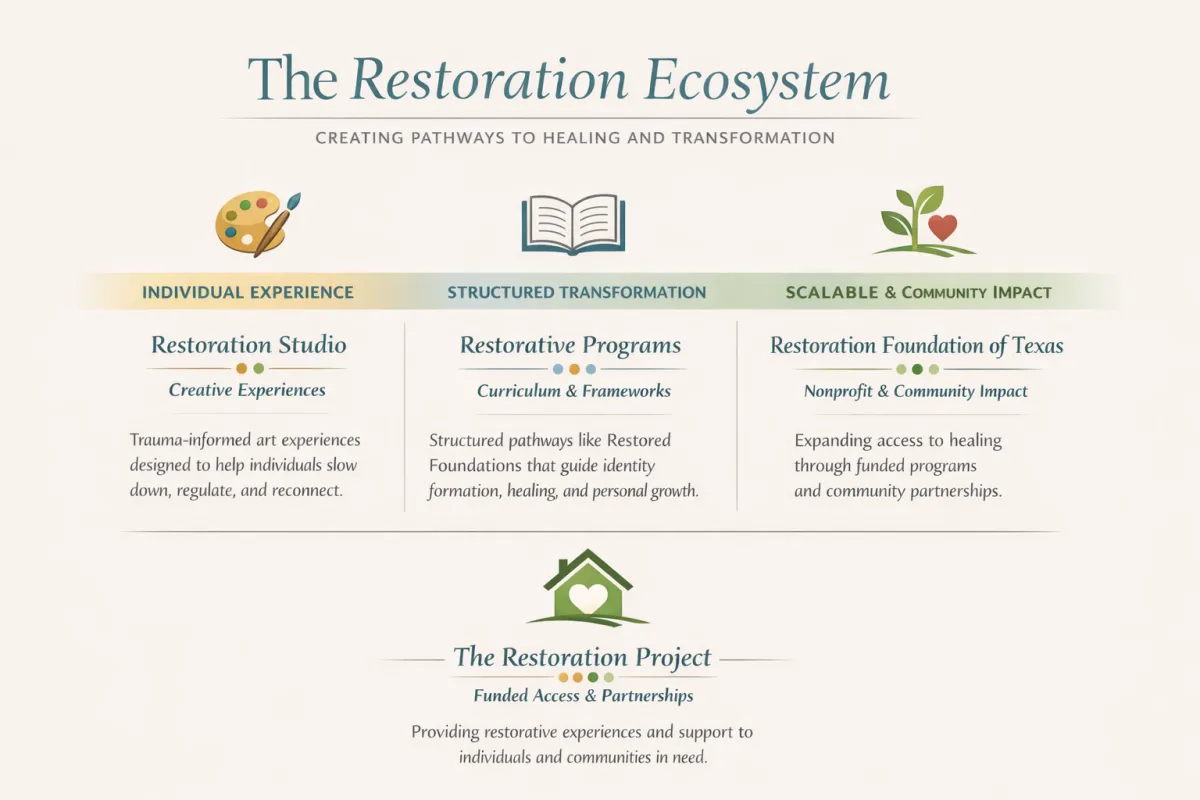 Restoration Resources is designed as an integrated ecosystem—where individuals can enter the healing process in a way that feels accessible, supported, and sustainable.