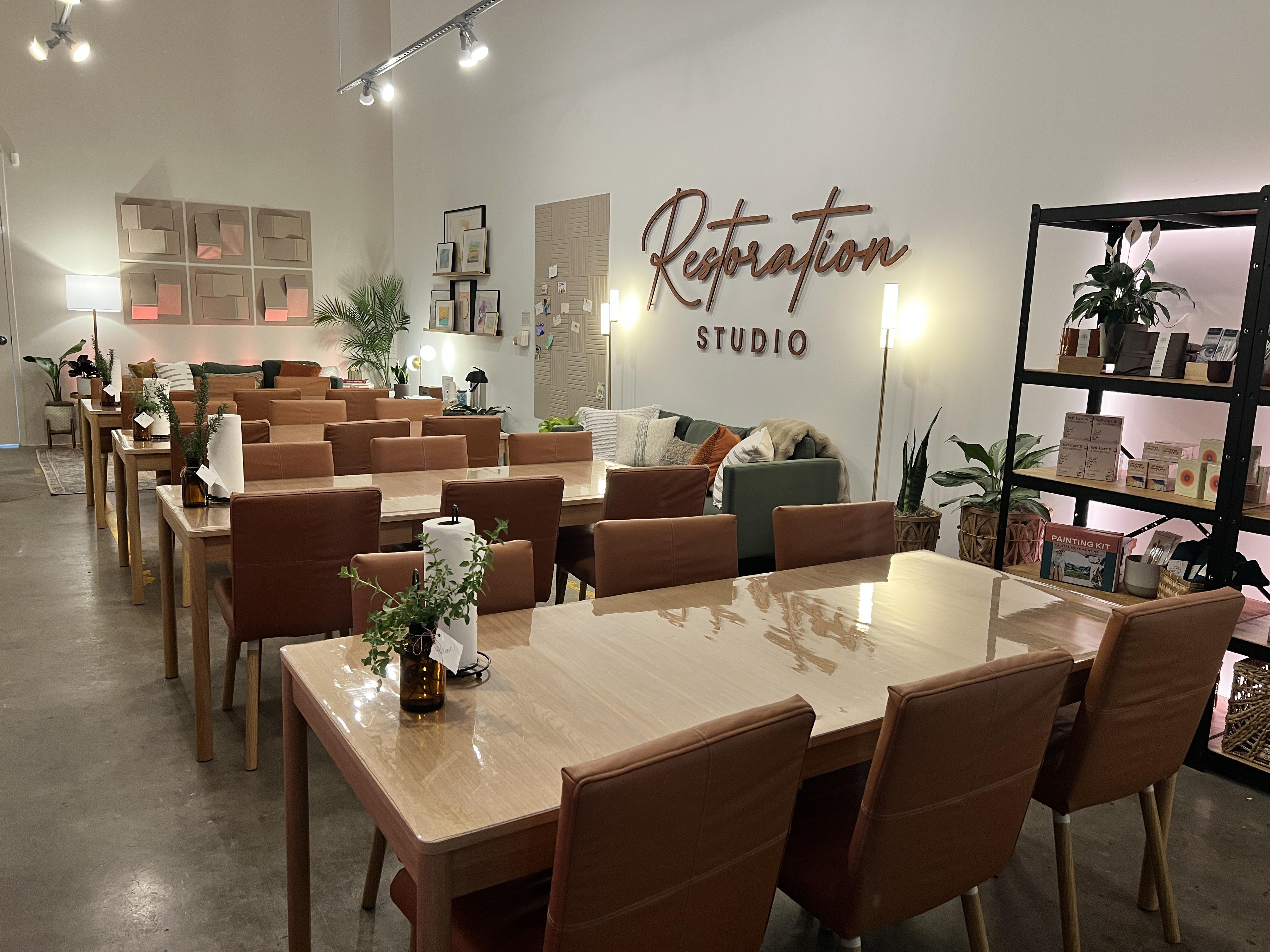 Restoration Studio is a calm, welcoming art studio where you can slow down, reconnect, and explore creative expression in a space designed for ease, beauty, and freedom.